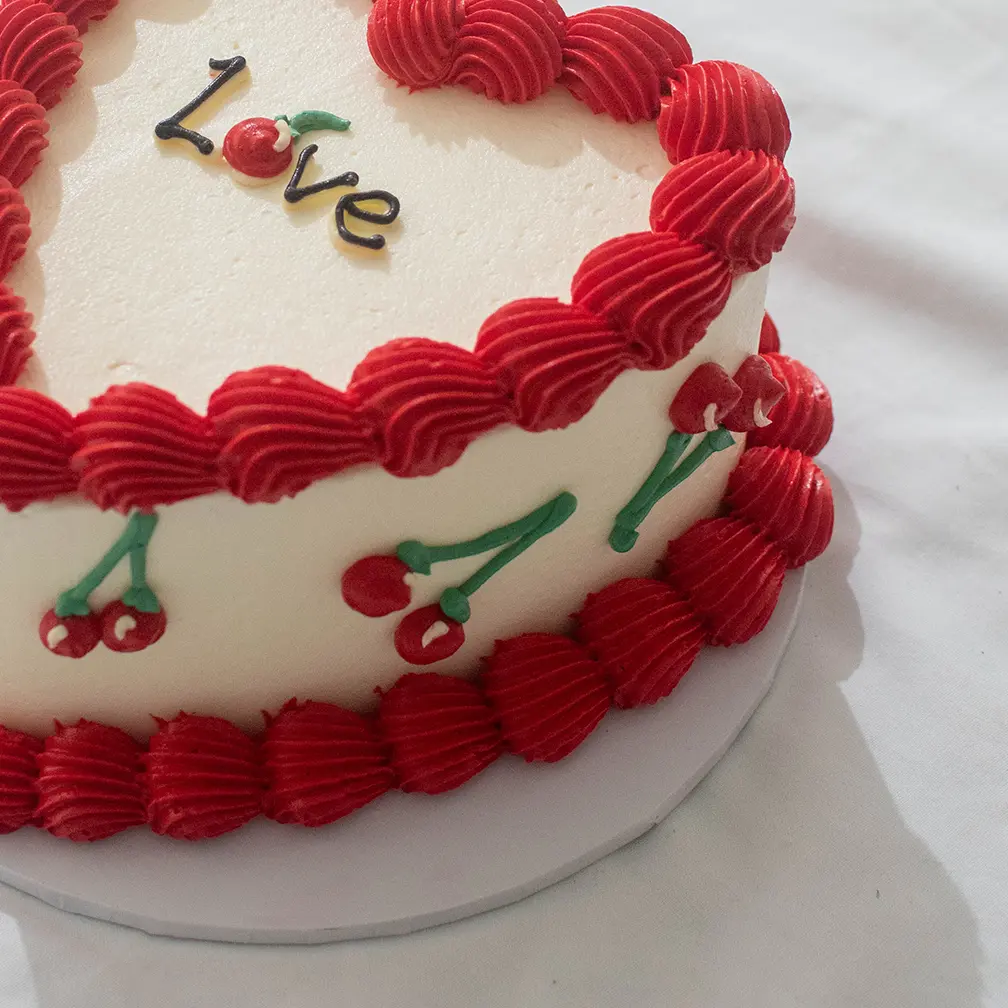 Celebrate love in style with our beautifully designed Heart Cake Melbourne, a charming vintage-inspired cake featuring a classic heart shape, bold red buttercream piping, and delicate cherry details. With its clean cream base and retro piping style, this cake delivers the perfect mix of nostalgic charm and modern elegance.